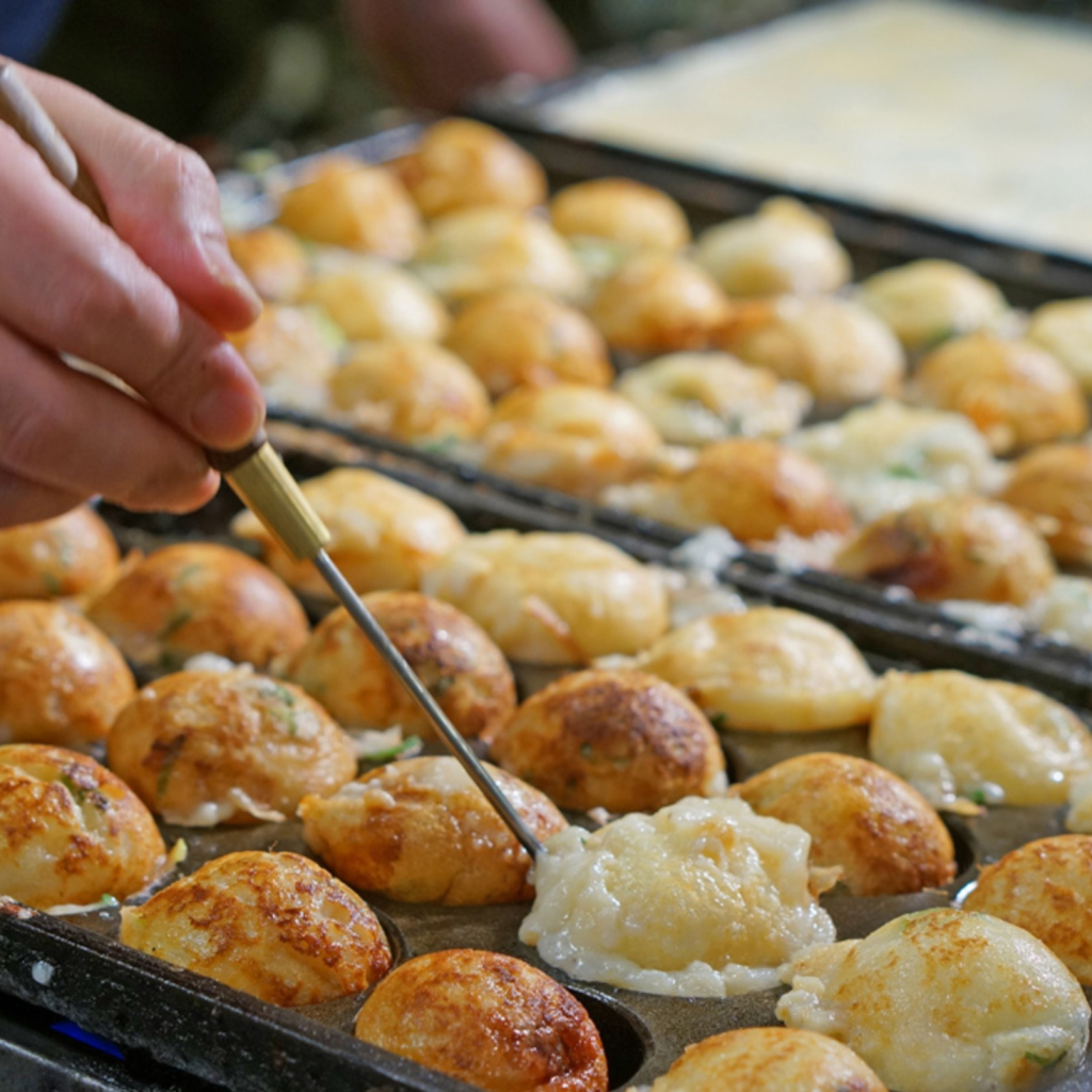 Osaka, Japan’s “Kitchen of the Nation,” is famous for takoyaki — crispy-on-the-outside, soft-on-the-inside balls filled with octopus, tempura scraps, and green onions. Topped with savory sauce and bonito flakes, they’re a must-try while exploring Dotonbori’s neon-lit streets.
