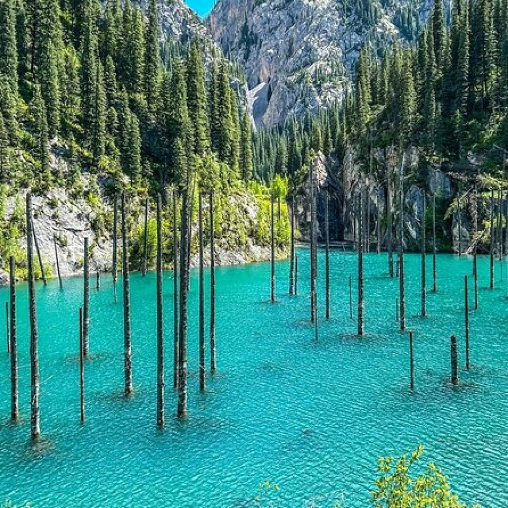 Located in southeastern Kazakhstan, these alpine lakes are famous for their crystal-clear waters and scenic beauty. Kaindy Lake, in particular, is known for its submerged forest, creating a surreal experience.
