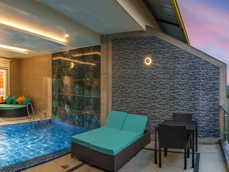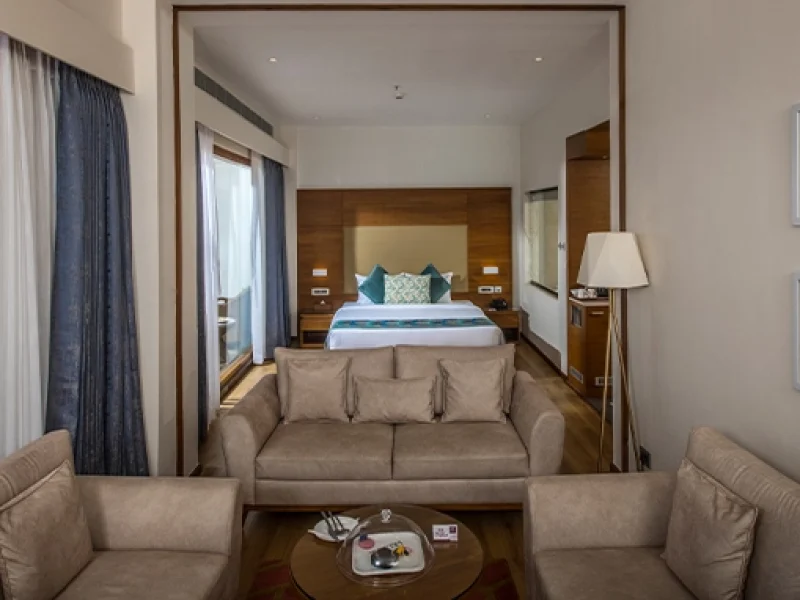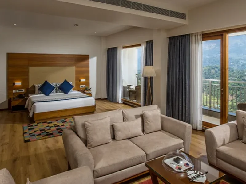 Cozy Accommodations: Elegant rooms with modern interiors, private balconies, and stunning hill views.