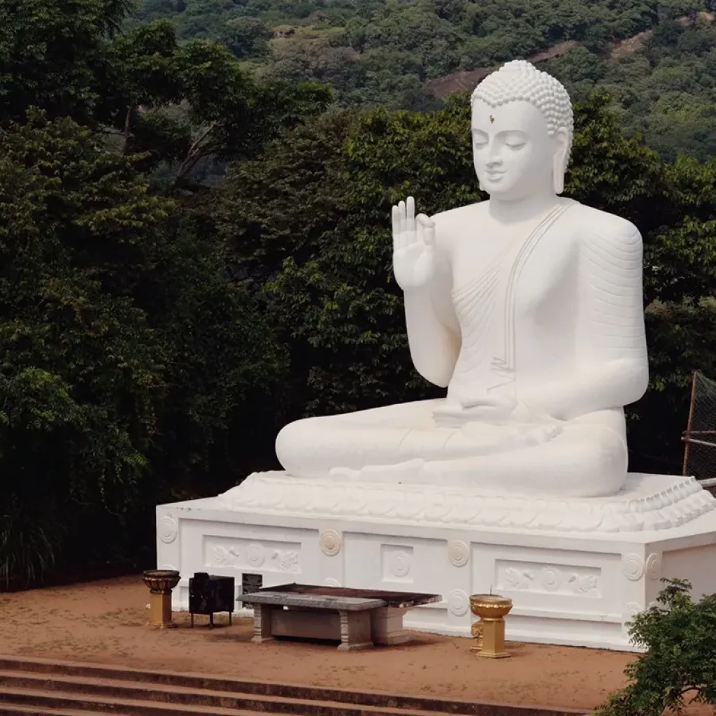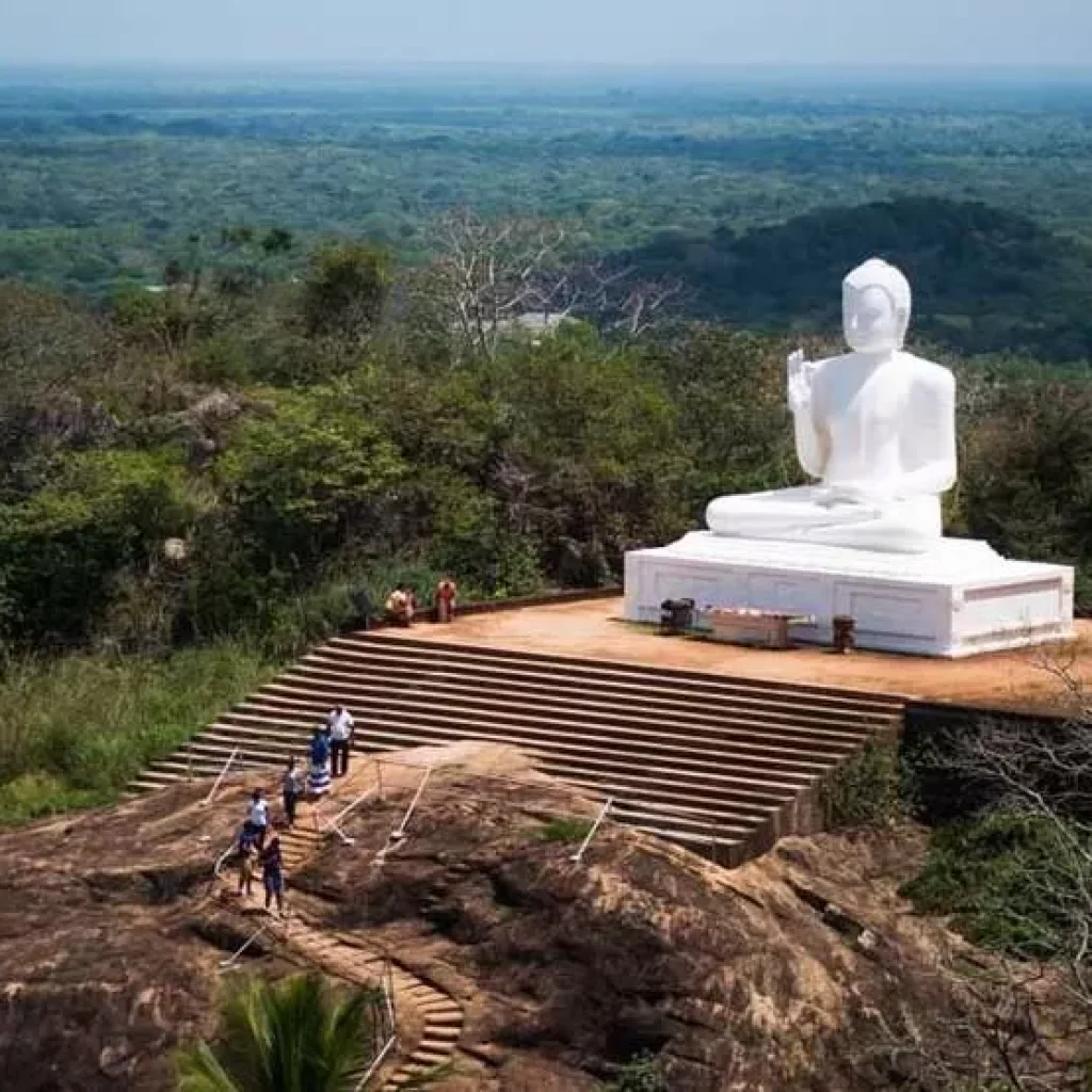 Along the way, you’ll encounter stone inscriptions, ancient stupas, and monk residences carved into the rock. The most famous stop is the Ambasthala Dagoba, built on the spot where Mahinda met King Devanampiya Tissa. Nearby stands a white marble statue of the Buddha, serene and watchful, gazing over the vast plains below.