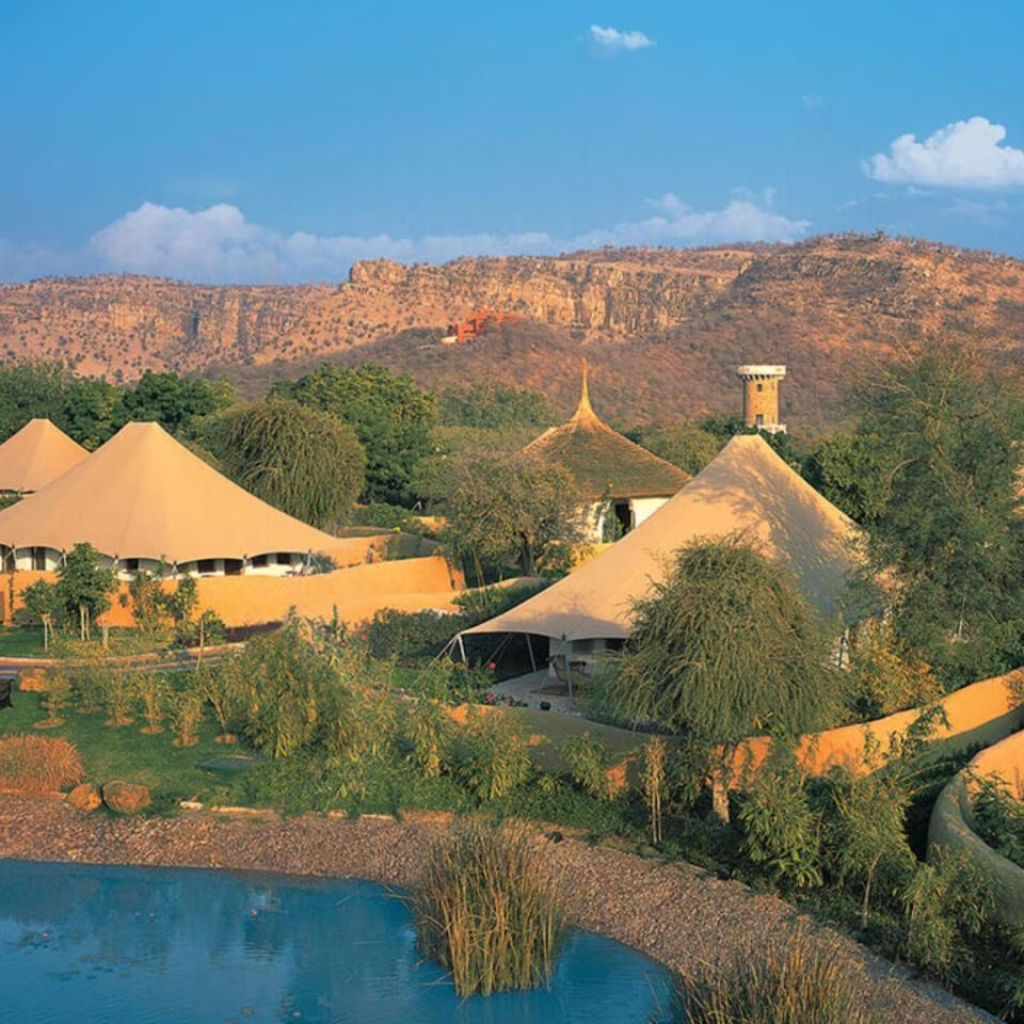 For luxury safari lovers, Vanyavilas is unmatched. Guests stay in opulent tented suites with private decks while enjoying curated wildlife safaris in Ranthambore National Park.