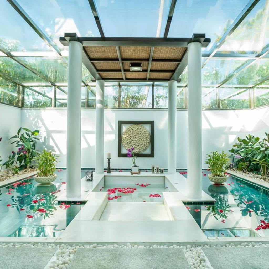 - Private villas with therapy zones, organic meals, spa packages.